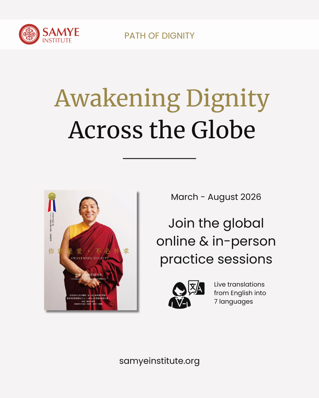 Samye Institute invites you to take part in Awakening Dignity Across the Globe, a new program, designed to provide ongoing guidance, community connection, and practice support alongside the online course Awakening Dignity: A Meditation Course to Embrace Your Noble Heart.